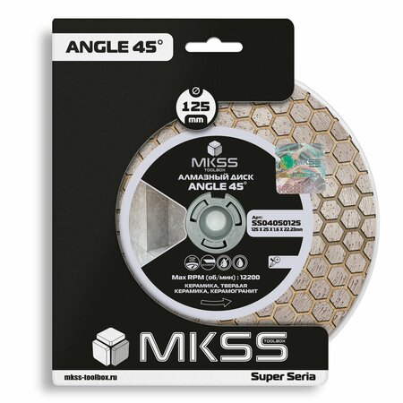 Алмазный диск ANGLE 45° предназначен для резания и подшлифовки кромкикерамической плитки, твердой керамики, керамогранита под 45 градусов (заусовка). Широкий двухсторонний алмазоносный слой 25 мм армирует корпус, делает его жестким. В то же время алмазоносная связка с «сотовым» рисунком слоя делает резание мягким и высокопроизводительным. Большая плоскость создает эффект «опоры», направляя диск строго по прямой.