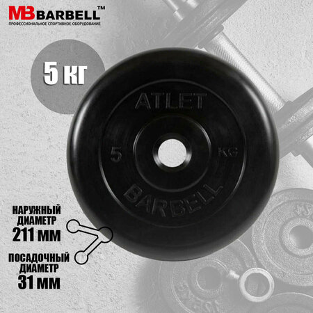 Диски для штанги ATLET 5 кг 31 мм обрезиненный. MB Barbell MB-AtletB31-5