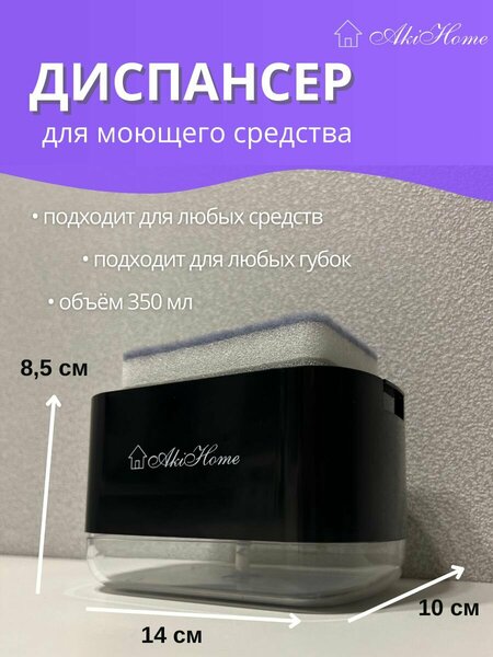 Кухонный диспенсер моющего средства для мытья посуды с губкой в комплекте - отличное устройство на вашей кухне для придания вашей посуде и кухонным приборам идеальной чистоты. Компактные размеры и удобство в использовании сделает мытье посуды более комфортным и быстрым, по сравнению с использованием обычных бутылок с моющими средствами. Оптимальная дозировка позволит сэкономить на расходе моющего средства. Отличное качество исполнения и современный стиль диспенсера украсит любую кухню, а прозрачная емкость сделает контроль за количеством жидкости более простым. Губка которой вы пользуетесь больше не будет валяться по всей раковине и оставлять мыльные подтеки, а удобно разместится на диспенсере. Чтобы заполнить дозатор, снимите его верхнюю часть, наполните жидким моющим средством, затем намочите губку и слегка надавите ею на дозатор. Губка входит в комплект поставки. Остерегайтесь подделок. Диспасер коллекции AkiHome отличается от дешевых аналогов своей долговечностью и качеством изделия. Диспансер для моющего средства. Дозатор для моющего средства. Средство для мытья посуды Губка для мытья посуды. Дозатор для мытья посуды. Диспансер для мытья посуды.