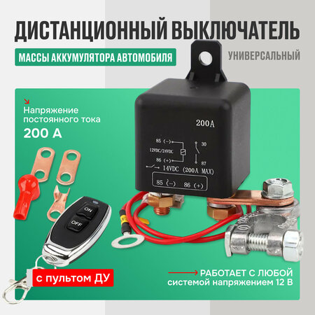 Дистанционный выключатель массы аккумулятора автомобиля Ternof X1 12 В, 200 А предназначен для дистанционного отключения и подключения питания автомобиля. Пульт акб рассчитан на работу с бортовой сетью авто с напряжением 12 вольт и может выдерживать ток до 200 ампер, что делает его подходящим для большинства легковых автомобилей, внедорожников, грузовиков и других транспортных средств. Он устанавливается непосредственно на аккумулятор и позволяет дистанционно управлять подачей питания с помощью пульта дистанционного управления. Автомобильный пульт имеет радиус действия до 50 метров. Отключатель в машину выполняет несколько ключевых функций. Прежде всего, оно позволяет полностью отключать аккумулятор от автомобильной электросети, что предотвращает его разряд, когда автомобиль не используется. Это особенно полезно в холодное время года или при длительном хранении автомобиля. Кроме того, использование аккумуляторного ключа снижает риск случайного замыкания и защищает автомобиль от кражи, так как без питания основные системы автомобиля становятся неактивными. Конструкция устройства отключения и включения электроэнергии выполнена из прочных и долговечных материалов, устойчивых к коррозии и механическим повреждениям, что обеспечивает его надежность и долговечность в эксплуатации. Универсальное устройство оснащено защитой от перегрузок и коротких замыканий, что исключает возможность повреждения электрооборудования автомобиля. Установка Ternof X1 не требует специальных навыков или инструментов, и может быть выполнена самостоятельно в течение нескольких минут.