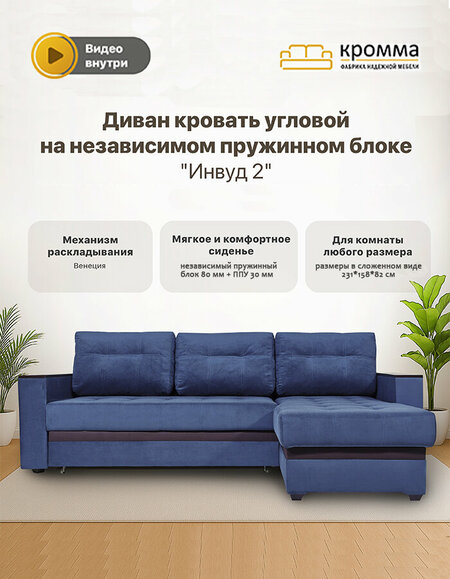 Угловой диван Инвуд 2 - стильный и комфортный диван подойдет для комнаты любого размера. Универсальный угол дивана поможет расположить диван в любое положение, удобное именно для Вашего интерьера Спальное место с полиуретановой подложкой станет идеальной поддержкой для людей с проблемным позвоночником. Благодаря жесткому спальному месту, диван дает отличную профилактику позвоночнику во время сна. Уровень мягкости - 2. Место для сидения на независимом пружинном блоке подарит приятный и комфортный отдых Мебельная ткань велюр, из которой изготовлен диван – это устойчивость к царапинам и истираниям, антивандальная, легкая очистка и длительное время сохранение прекрасного внешнего вида Все механизмы выполнены из качественных материалов, что поможет продлить срок службы дивана на десятилетия Раскладной механизм "Венеция" позволяет превратить гостевой диван в полноценное спальное место Двухместный угловой диван станет прекрасным дополнением любого интерьера Вместительный короб для хранения позволит хранить постельное белье и подушки прямо в диване Диван-кровать Инвуд 2 с жесткими подлокотниками – это отличное решение для дома и для дачи Диван подойдет для гостинной, кабинета, детской, кухни, дачи и любого другого помещения В комплекте с диваном поставляются 3 диванных подушки Мягкая мебель для дома – это наша гордость. Наши диваны являются качественными и надежными Продуманный до мелочей диван Инвуд 2 сочетает в себе надежный каркас, мягкие ткани, многофункциональность и быструю сборку за 15 минут с минимальным набором инструментов - ощутите комфорт у себя дома! Легкая трансформация создаст для Вас максимально комфортный отдых и обеспечит Вам здоровый сон. Спинка защищает от соприкосновения со стеной во время сна. Универсальный угол - положение угла покупатель определяет при сборке. ЦВЕТ ДИВАНА МОЖЕТ ОТЛИЧАТЬСЯ ОТ ФОТО ИЗ-ЗА ЦВЕТОПЕРЕДАЧИ И ОСВЕЩЕНИЯ. ПОЖАЛУЙСТА ОБРАТИТЕ ВНИМАНИЕ НА ПОСЛЕДНЕЕ ФОТО С ОБРАЗЦОМ ЦВЕТА ВНИМАНИЕ! Если Вы получили поврежденный диван или в комплекте не хватает деталей, не спешите оставлять негативный отзыв, свяжитесь с нами и мы сделаем все возможное, чтобы решить проблему и оставить приятные впечатления. Мы очень дорожим нашими покупателями и репутацией, поэтому мы всегда на Вашей стороне ДИВАН ПОСТАВЛЯЕТСЯ В РАЗОБРАННОМ ВИДЕ. ДИВАННЫЕ ПОДУШКИ И КРЕПЕЖ ЛЕЖАТ В ЯЩИКЕ ДЛЯ ХРАНЕНИЯ. Если Вы не обнаружили какие - то детали, пожалуйста проверьте ящик для хранения белья. Каждый диван комплектуется вручную и проверяется перед отправкой в доставку Срок службы - 10 лет. Преимущества ткани Velutto: • Гладкая и приятная на ощупь текстура • Долгий срок эксплуатации • Высокая стойкость к истиранию - 35 000 циклов • Простой уход