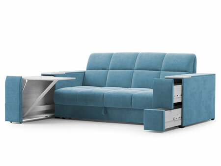 Диван-аккордеон Флай: современный комфорт и функциональность Диван-аккордеон Флай представляет собой современное и функциональное решение для вашего дома. С его помощью вы сможете быстро и удобно превратить диван в кровать, обеспечив комфортный отдых для двух человек. Диван оснащен механизмом "Аккордеон", который обеспечивает быстрое и удобное превращение в кровать. Длина спального места составляет 200 см, а ширина - 160 см, что позволяет комфортно разместиться двум людям. Подлокотники дивана оснащены ящиками для хранения белья и столом для ноутбука или чтения книг. Это делает диван не только удобным, но и практичным. Обивка дивана выполнена из прочного текстиля, который легко чистится и сохраняет свой цвет в течение длительного времени. Цвет дивана - миднайт, что создает уютную и стильную атмосферу в вашем доме. Каркас дивана выполнен из металла, что обеспечивает прочность и долговечность изделия. Наполнитель состоит из пенополиуретана, который обеспечивает мягкость и комфорт при сидении. Съемный чехол позволяет легко ухаживать за диваном и сохранять его в отличном состоянии. Диван-аккордеон Флай - отличный выбор для всех, кто ищет удобный и функциональный диван.