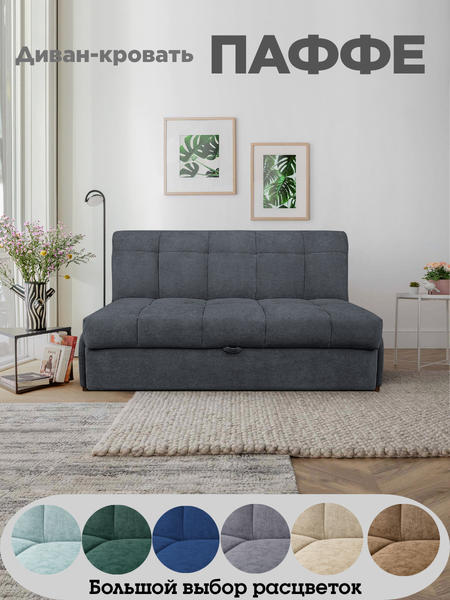 Диван-кровать Паффе (серый) для отдыха и сна, механизм аккордеон, без подлокотников, механизм аккордеон, 145х200 см