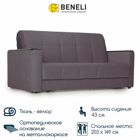 Диван-кровать прямой Beneli мемфис раскладной, с подлокотниками, темно-серый, Велюр, механизм Аккордеон, 178х108х96см, 1шт