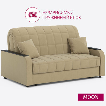 Диван-кровать раскладной, аккордеон MOON FAMILY 044, бежевый, велюр, 163х104х90 см, спальное место 140х200 см, независимый пружинный блок (арт Z000013)