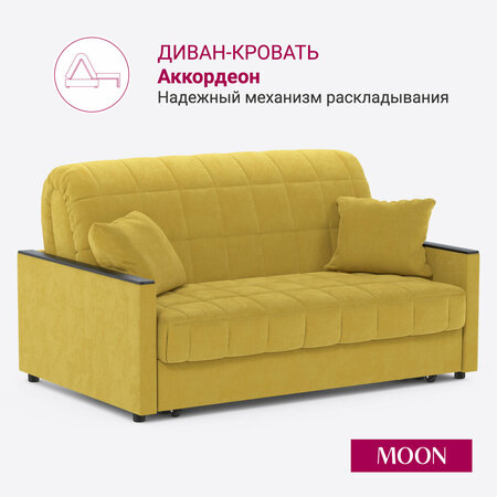 Диван MOON FAMILY 134 желтого цвета, компактные габариты 155х104х90 см с полноразмерным спальным местом 140х200 см • Функциональный диван с механизмом «Аккордеон» собственного производства • Тип дивана: диван-кровать • Форма дивана: прямой • Диван раскладной: легко раскладывается и складывается • Наполнение, комфортность дивана: эксклюзивная пена UniqFoam • Обивочный материал: микровелюр • Спальное место: 140х200 см, ровное без стыков • Диван с подлокотниками: узкие подлокотники, которые экономят пространство; есть декоративные накладки (декор на подлокотниках) • Декоративные подушки в комплекте: приятный аксессуар мягкой мебели без дополнительной оплаты • Малогабаритный диван: экономия пространства вашего дома • Дополнительная гарантия 10 лет на металлокаркас • Возможность выбора ширины спального места MOON FAMILY 134 создан для тех, кто ценит пространство и комфорт. Благодаря компактным размерам его можно разместить даже в любой комнате, а в разложенном виде диван превращается в полноценное спальное место. Дизайн универсален и подойдет для любой кухни, дачи, гостиной или детской комнаты. ПОДЪЕМ НА ЭТАЖ В ПОДАРОК! БЕЛЬЕВОЙ КОРОБ ПРИОБРЕТАЕТСЯ ОТДЕЛЬНО! ТОВАР ПРИХОДИТ В РАЗОБРАННОМ ВИДЕ — ВЫ МОЖЕТЕ ЗАКАЗАТЬ УСЛУГУ СБОРКИ! *Представленные на сайте цвета могут отличаться от реальных, ввиду особенностей цветопередачи различных экранов устройств. **Конструктивные особенности мебели допускают отклонения от заявленных размеров ± 2 см.