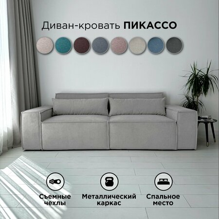 Диван-кровать Redsofa Пикассо 260 см светло-серый Teddi. Раскладной прямой диван со съемными чехлами, для дома и офиса (Мебельный гарнитур бытового назначения)