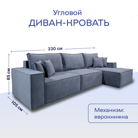 Диван-кровать угловой с оттоманкой в стиле Лофт, серый, выкатной механизм, пружинный блок