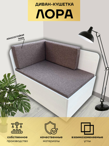 Диван кушетка лора со спальным местом и ящиком для хранения с двумя подушками на молнии. Подходит для кухни, офиса и детской, благодаря компактности, прочности и надёжности конструкции. Выдвижная коробка. Каркас состоит ЛДСП 16 мм, оргалит 3.2 мм, МДФ 6 мм. Поролон высота 80 мм плотность 22-25. Подушка 700х350х100, плотность 22-25.