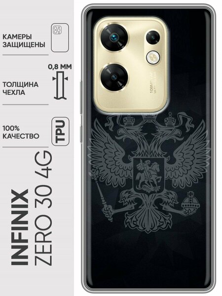 Дизайнерский силиконовый чехол для Инфиникс Зеро 30 4Ж / Infinix Zero 30 4G Герб России Силиконовый чехол с защитой камер на Infinix Zero 30 4G замечательный выбор для защиты вашего смартфона! Чехол убережет Ваш телефон от царапин, сколов, пыли и помогает сохранить привлекательный вид как можно дольше. Он выполнен из прочного силикона, надёжно фиксирует телефон, удобно сидит в руке, не скользит, не имеет запаха, плотно прилегает к телефону, не утолщает его визуально и обеспечивает легкое нажатие кнопок. Кейс для Инфиникс Зеро 30 4Ж не препятствует беспроводной зарядке. Простой и стильный, практически незаметный аксессуар. Хотите , чтобы телефон выглядел стильно? Советуем обратить внимание на этот яркий и красивый чехол с эксклюзивным принтом. Это отличный подарок на Новый год, День Рождения, жене, мужу, парню, девушке, бабушке или деду. У нас вы найдете чехол для Инфиникс Зеро 30 4Ж / Infinix Zero 30 4G с картинками: тигр, бабочки, сова, корги, мопс, надписи, мрамор, цветы, волки, лев, море, единороги, авокадо, череп, медведь.