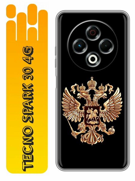 Чехол для Tecno Spark 30 4G с принтом Герб России золотой (Техно Спарк 30 4G)
