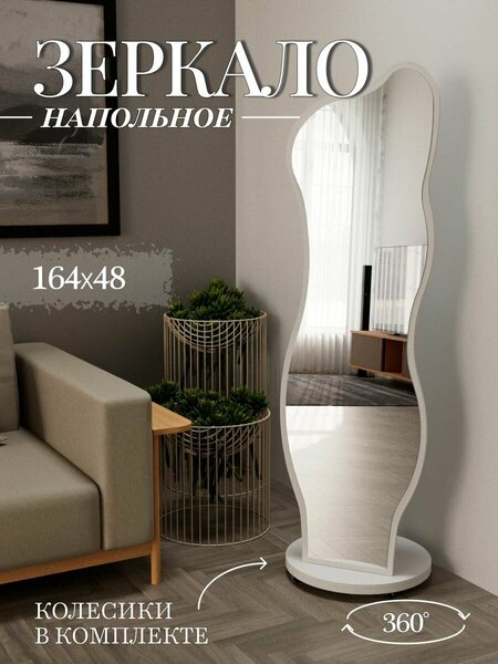 Представляем вам изысканное напольное зеркало, которое не только отражает ваш образ, но и становится центральным элементом вашего интерьера. Это уникальное зеркало в полный рост не только функционально, но и эстетически привлекательно. Его фигурная форма добавляет нотку оригинальности и стиля в любое помещение. Изготовленное из высококачественного ЛДСП, зеркало отличается долговечностью и прочностью. Белый цвет делает его универсальным и легко вписывающимся в любой интерьер — от классического до современного. Размеры зеркала (164 см в высоту и 48 см в ширину) делают его идеальным для использования в гостиной, прихожей или спальне. Дополнительные элементы, такие как полка и вешалка, позволяют удобно хранить одежду, аксессуары и другие предметы, обеспечивая порядок и комфорт.