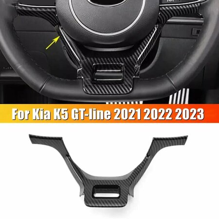 Feature:100% Brand new and high quality.Easy installation, wear-resistant and scratch-resistant.Self-adhesive design, harmless to your car, easy to attach to the car, and will not fall off.Clean the position before installation, and heat the tape a little for better adhesion.Decorate your car to make it charming luxury vivid.Specification:Material: ABS PlasticColor: Carbon Fiber Look(Black)Fitment: For Kia K5 GT-line 2021 2022 2023 2024(Only Fit for GT Sport steering wheel)Package Included:1 x Steering Wheel CoverInstallation Step:1. Make sure the installation location is clean and dry.2. Compare products and find the most suitable installation location.3. Tear off the tape and use a hair dryer or heat to heat it.4. Carefully fix the position, install from one side, and then press for a few minutes.5. Do not touch water within 48 hours.6. You may go to professional automotive shop for install.Note:-The compatibility just for reference. Please make sure this item fit for your vehicle before purchasing.-The color of the actual items may slightly different from the listing images due to different computer screen, thanks for your understanding.