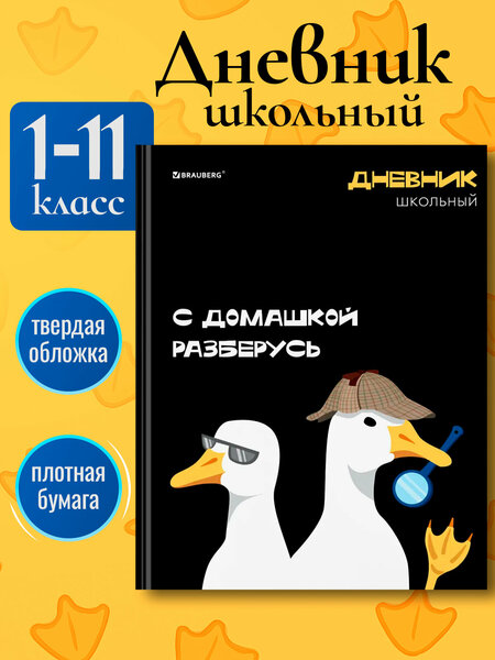 Дневник с рисунком «Гуси» – универсальный вариант для школьников 1 -11 классов. Твердая обложка надежно защищает дневник в течение всего учебного года. Офсетная бумага плотностью 70 г/м² полностью предотвращает просвечивание записей. Черный цвет дневника делает его одинаково подходящим для мальчиков и девочек. Он идеально подходит для школьников любого возраста: для младших классов (1, 2, 3, 4) с его простотой и наглядностью, для средних классов (5, 6, 7, 8, 9) с учетом возрастающей учебной нагрузки, и для старшеклассников (10, 11), сочетая функциональность с лаконичным стилем. Внутри вы найдете текст гимна Российской Федерации и полезный справочный материал, который пригодится в учебе. Такой дневник станет практичным помощником в организации учебного процесса для школьников. Заказывайте уже сейчас!