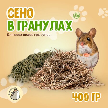 Гранулы сена разнотравье от БОНИЛАСКА - это высококачественный корм для грызунов, который обеспечивает здоровье и благополучие вашего питомца. Корм для грызунов представляет собой разнотравное сено, гранулированное из луговой травы. Он предназначен для ежедневного кормления декоративных грызунов, включая морских свинок, дегу, шиншилл, кроликов, хомяков и других. Рацион травоядных грызунов, таких как дегу, шиншиллы и другие, основывается на сене. Это обеспечивает здоровье пищеварительной системы, укрепляет зубы и нормализует функции кишечника. Гранулы сена богаты клетчаткой, кальцием и витамином D, что способствует укреплению костей и является хорошей профилактикой от заболевания рахитом. Корм произведен в России, в Краснодарском крае, по специальной технологии, позволяющей сохранить питательные вещества и витамины. Храните его в сухом месте, а гранулы сена упакованы в двойной пакет. Корм подходит для всех возрастов грызунов и содержит такие травы, как мятлик, овсюг, тимофеевка, пырей, бобовые, лебеда и полынь. Упаковка корма – прозрачный пакет весом 400 грамм. Обеспечьте своему питомцу постоянный доступ к воде для поддержания здоровья и благополучия.