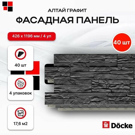 Сложный рисунок панели алтай c неровными колотыми краями передает надежность и высокие декоративные качества натурального слоистого песчаника. 4 цвета коллекции найдут применение в отделке цоколя и фасадов, отлично гармонируя между собой. Коллекция алтай окрашена в массе. Поверхность панелей Дёке является точным воспроизведением природных текстур камня и кирпича, а трехступенчатая система окрашивания создает абсолютную иллюзию натуральных материалов. Отделка фасада материалами из натурального или искусственного камня более чем в 3 раза превышает отделку панелями Дёке. Более того, фасад из панелей Дёке в 20 раз легче камня и кирпича, а это серьезно уменьшает нагрузку на фундамент и снижает затраты на строительство. Ассортимент фасадных панелей Дёке предлагает покупателю более 50 цветовых решений в 9 коллекциях, включающих, в том числе, классический и гладкий кирпич, мрамор, песчаник и сланец. Только в ассортименте Дёке представлена панель «Узкий клинкер», не имеющая аналогов Усиленные ребра жесткости обеспечивают панелям дополнительную прочность и стойкость к деформациям, а значит – надежность и долговечность. Уникальному запатентованному замку Дёке не страшны ветры и ураганы, а специальные упоры сохранят необходимые тепловые зазоры в любую погоду. Гарантия составляет 50 лет на отсутствие деформаций вследствие воздействия климатических факторов и 5 лет на стабильность цвета. В упаковке 40шт.