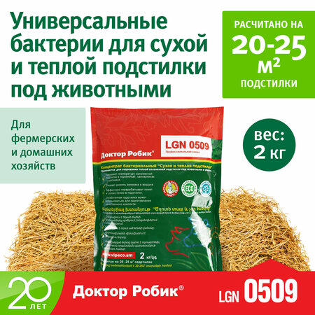 Бактериальный концентрат Доктор Робик LGN0509 применяется для обогащения подстилки для животных и птиц почвенными бактериями рода Bacillus. Подстилка для животных предназначена для свиней, кроликов, кур, птиц, коз, овец и КРС. Вес 2 кг рассчитан на 20-25 м2 подстилки. Применение: Эффективная подстилка для сельскохозяйственных животных состоит из опилок или измельченной соломы, которые укладываются в несколько слоёв, каждый по 15-20 см. Укладывается первый слой, посыпается бактериальным концентратом, увлажняется водой. Расход препарата 200 г на 4-5 м2 на один слой. И так несколько слоёв. Затем запускаются птицы или животные. Для птиц рекомендовано 2-3 слоя, для животных – 3-4 слоя. Верхний слой подстилкаи рыхлится 1 раз в неделю или чаще. Со временем она утрамбовывается и тогда следует положить новый слой. Такая подстилка может служить до 2-х лет. Далее на её основе можно получить органическое удобрение. Состав: почвенные бактерии рода Bacillus, титр 1,5х10 в 9 степени КОЕ/г. срок годности: 2 года. Условия хранения: в закрытом виде в сухом помещении.