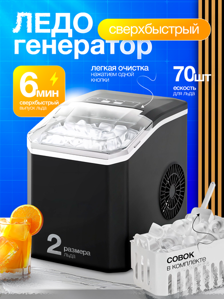 Настольный льдогенератор имеет широкое применение благодаря компактным размерам 22.2(Г)*31.3(Ш)*32(В) см. Благодаря портативному и компактному дизайну наш настольный льдогенератор легко переносить и использовать. Он имеет широкое применение, где бы вы ни находились, лед всегда будет под рукой. Вы можете использовать его в баре, чайной, КТВ, на кухне и в офисе. Наша льдогенераторная машина производит 9 кубиков льда всего за 6-8 минут. Она может производить до 12 кг льда в день, что позволяет вам иметь свежий лед каждый день. Кроме того, наш настольный льдогенератор работает тихо и оснащен быстрой и тихой системой охлаждения. Индикаторы нашей настольной льдогенераторной машины напомнят вам, когда нужно вынуть кубики льда, когда корзина полная, и добавят воды, когда в льдогенераторе не хватает воды. : Наш портативный льдогенератор имеет два размера (маленькие и большие) кубиков льда, которые всегда используются для охлаждения напитков и еды. Он производит круглые и гладкие пулькообразные кубики льда, которые не повредят вашим рукам и всегда используются для охлаждения напитков и еды.