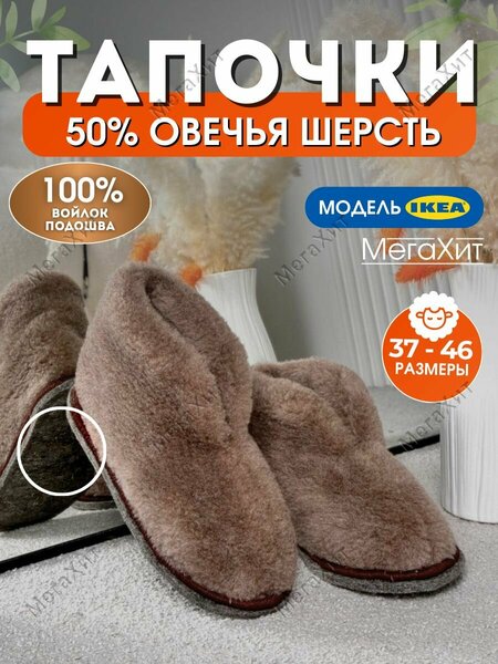 • МегаХит представляет вашему вниманию утепленные домашние тапочки из меха с закрытым носом, которые наполнят ваши ноги комфортом и уютом. Благодаря качественным материалам тапок для дома, создается эффект сухого тепла, потому что пушистые сверху чуни на 50% выполнены из натуральной овечьей шерсти, остальная часть - полиэстер. Стоит отметить, что шерсть состригается с животного, не причиняя ему вреда, а это значит, что наши домашние сапоги являются экологичным продуктом. Комнатные тапки имеют подошву из 100% войлока, что делает тапочки практичной обувью для носки дома, для дачи и сада. Дышащие домашние угги из овчины хорошо прошиты, поэтому они износостойкие и долговечные, и несколько сезонов вам точно будет тепло и комфортно в осеннее, весеннее, и даже в зимнее время года, потому что обувь с закрытой пяткой и закрытым носком демисезонная. Мягкие мужские домашние сапоги создают сухость для ног, благодаря чему ваши стопы не будут потеть. Также, войлочные тапочки домашние можно назвать массажные, так как они стимулируют кровообращение, участвуют в терморегуляции и снимают напряжение в мышцах ног после рабочего дня. Стильные плюшевые бурки на войлочной подошве не раздражают кожу и гипоаллергенны, а все благодаря тому, что в составе овечья шерсть, поэтому, подходят для взрослых мужчин. Закрытые меховые тапочки для мужчин - идеальный подарок на новый год (нг) мужу, шикарный подарочный вариант брату, тестю или свекру на 23 февраля. Подарите заботу и любовь парню или любимому мужчине на 14 февраля, купив наши легкие и мягкие домашние мужские тапки. Чуни милые можно подобрать папе на день отца, профессиональный праздник или юбилей. Лучшему другу теплые высокие сапожки из шерсти подарят радость как на день рождения, так и на свадьбу, а коллеге – на новоселье. Дышащие шерстяные тапки очень мягкие, благодаря чему они удобны, не сковывают движение и комфортны при ходьбе. Также, повседневные высокие сапоги стиля икея по достоинству будут приятны дедушке. Это практичная натуральная домашняя обувь подойдет не только после бани и душа, но и для работы, офиса или в роддом. Гостевые тапки ikea не дадут вам прогадать и точно не оставят вас равнодушными! Обращайтесь в наш магазин МегаХит и наслаждайтесь прекрасными и теплыми покупками для всей семьи. Мы рады будем представить вам новые модели нашей коллекции сезон весна лето 2024 года. Приятных и полезных вам приобретений в 24 году! • Рекомендации по уходу: тапочки домашние рекомендуем стирать вручную или в стиральной машине деликатной стиркой при режиме "шерсть", t не более 25-30 градусов. При стирке важно использовать специальные средства для шерсти и без отбеливателя. Сушку производить естественным путем при комнатной температуре в дали от отопительных приборов, и не гладить утюгом. Когда ваши милые бабуши высохнут – расчешите их. • Представленные цвета: белые, бежевые, коричневые, черные.• Внимание! Домашняя обувь маломерит, выбирайте на размер больше. Представленные размеры: 35 36, 37 38, 39 40, 41 42, 43 44, 45 46.