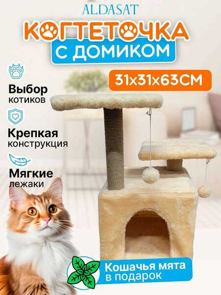 Домик с когтеточкой для кошки. Когтеточка-домик с кошачьей мятой * Съёмный чехол можно стирать и заменить * Этот домик для кота интереснее, чем когтеточка картонная (когтедралка). * Крепкая напольная конструкция * Сменная когтеточка столбик, после износа можно заменить на новую * Простая сборка дом для кошек + когтеточка столбик + лежак для кошек. Игровой комплекс имеет следующие размеры в собранном виде: * Общие габариты: 31х31х63 см * Платформы: 25х25 см * Диаметр столбика: 7 см * Размеры домика: 31х31х31 см * Габариты упаковки: 31х31х16 см Комплектация: * Мягкие полки – 4шт; * Бруски – 4шт; * Маленький столбик – 1шт * Набор фурнитуры – 1уп; * Пушистый съёмный чехол – 1шт; * Ароматная кошачья мята – 1уп; * Джутовая когтеточка – 1шт; * Шар игрушка для котов и игрушки для котят – 2шт Надеемся, Ваш питомец полюбит свой новый домик.