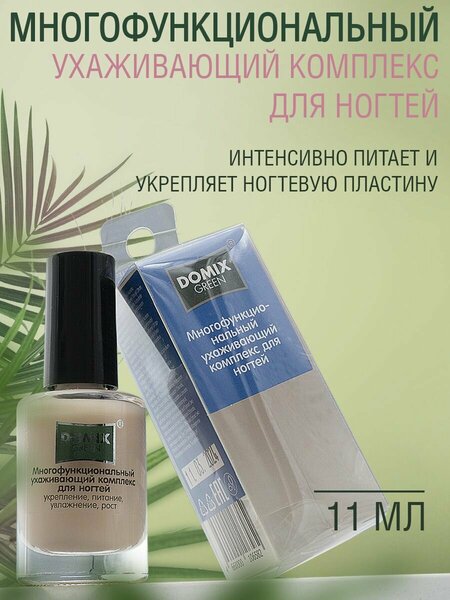 Domix Green Многофункциональный ухаживающий комплекс для ногтей! Этот уникальный продукт, объемом 11 мл, станет вашим незаменимым помощником в уходе за ногтями. Благодаря тщательно подобранному составу, Domix Green обеспечивает комплексный уход: Укрепление и рост: Входящие в состав масла эффективно укрепляют ломкие ногти, стимулируя рост сильных и здоровых ногтевых пластин. Питание и увлажнение: Натуральные экстракты и витамин Е интенсивно питают и увлажняют ногти, возвращая им жизненную силу и эластичность. Защита от внешних факторов: Domix Green повышает устойчивость ногтей к неблагоприятным воздействиям окружающей среды, таким как перепады температур, химические вещества и механические повреждения. Восстановление натурального блеска и ухоженного вида: Регулярное использование комплекса возвращает ногтям их естественный блеск, делая их здоровыми и ухоженными. Domix Green – это универсальное средство! Вы можете использовать его: Как самостоятельное средство: Для ежедневного ухода за ногтями, обеспечивая им необходимое питание и защиту. В качестве лечебной базы под лак: Для укрепления ногтевой пластины и защиты от вредного воздействия лака.