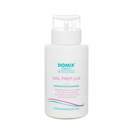 Обезжириватель ногтевой пластины и средство для снятия липкого слоя Domix Nail Prep Lux 2 в 1, 255 мл, с помпой - глубоко очищает ногти и снимает липкий слой или подготавливает ногти к процедурам, в том числе к наращиванию. После применения обезжиривателя обеспечивается максимальное сцепление материалов с ногтевой пластиной, а от липкого слоя не остается и следа. При использовании средства ногти не слоятся и не скалываются.