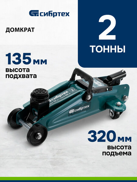 Гидравлический подкатной домкрат Сибртех 50834 с высотой подхвата 135 мм предназначен для подъема грузов массой до 2 т на высоту до 320 мм. Применяется для обслуживания автомобилей со стандартным клиренсом. Компактный домкрат подходит для самостоятельного использования автовладельцами.