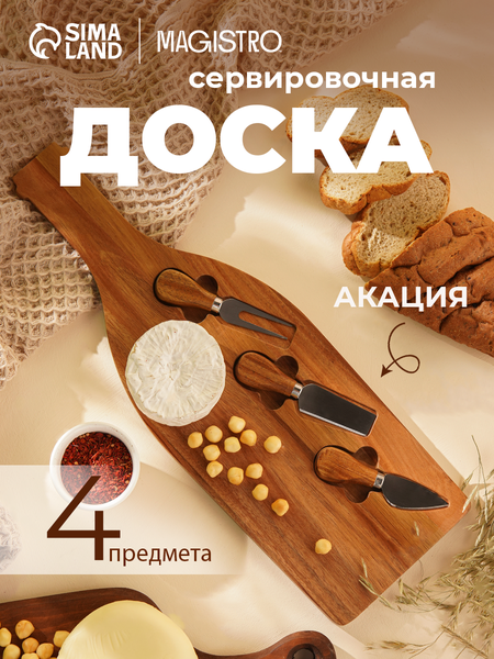 Доска разделочная Magistro "Bottle" для сыра 3 ножа, дерево акации