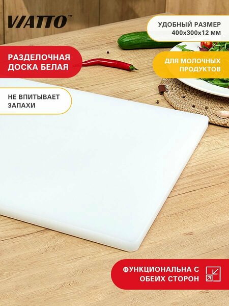 Доска разделочная 400х300х12 белая пластик 1 штука