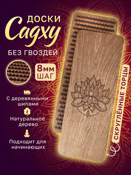 Доски Садху. Гвоздестояние, прекрасная возможность для очищения кармы. Мощный маccаж (альтернатива ортопедическому коврику) и нейротренажеру, воздействующий на множество нервных окончаний на стопе. В этой модели доски садху, роль гвоздей для йоги выполняют деревянные шипы, расположенные на равном расстоянии друг от друга на расстоянии 8мм. Тот же эффект, но безопаснее и не болезненно. Доски с шипами, это инструмент проработки целей и намерения достижений. Гвозди для йоги (шипы для йоги) благоприятно влияют на организм. Доски садху с деревянными шипами, для начинающих и для продвинутых пользователей, а так же это отличный инвентарь для фитнеса и тренажер для йоги. Деревянные гвозди, можно назвать живые гвозди. Польза: активизация физиологических процессов в организме и его оздоровление, помощь при психологическом дисбалансе, восстановление циркуляции энергии! Как и любой другой аскетизм, садху доска сжигает неблагоприятную карму. Идеальный подарок для мужчин и женщин. Подарок для всей семьи. На Ваш выбор различная гравировка (рисунок). Деревянная доска садху покрыта гипоаллергенным лаком на водной основе.- Садху для новичков. Садху гвозди. Доска садху для йоги. - Легко складываются шипами внутрь - Удобно брать с собой в поездку - Можно провозить в ручной клади самолета - До 45 размера ноги. - Подарочная упаковка. - Внутри подарок!
