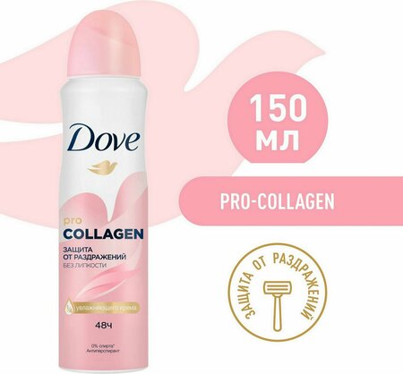 Dove Дезодорант-антиперспирант спрей женский Защита от раздражений без липкости с Pro-collagen комплекс 150 мл - 1 шт
