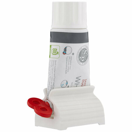 Дозатор для зубной пасты Подходит для любых тюбиков шириной до 56 мм. Металлический или пластиковый тюбик от зубной пасты, косметики, еды накручивается внутри дозатора, а когда содержимое закончится - просто вытаскивается. Имеет подставку, благодаря которой удобно ставить дозатор. Вставьте нижнюю часть тюбика в прорезь зажима-ключа, затем поместите зажим-ключ в подставку. Вращением ключа выдавите содержимое тюбика. Размер:7*4,5**3,5 см Вес: 27 грамм Материал: полипропилен Цвет: белый+красный