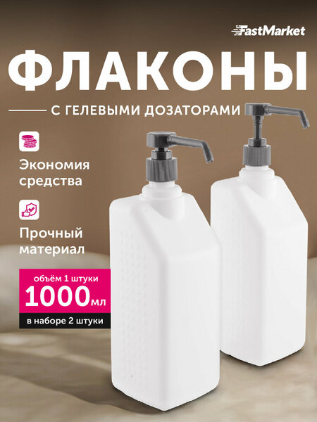 Косметический набор дозаторов FastMarket – это удобное решение для ванной комнаты или кухни. В комплекте - пустые квадратные флаконы 2 шт, которые подойдут под любой интерьер. На выбор однотонные белые бутылочки с белыми или темно-серыми дозаторами. Каждый диспенсер изготовлен из матового пластика без наклеек. Объем бутылки 1000 мл. Многоразовые пластиковые баночки удобно мыть и заправлять моющим средством. Надежная помпа позволяет использовать емкость для шампуня, геля для душа, хранения профессиональной косметики для волос, моющего средства для посуды, геля для стирки, под жидкое мыло для рук, масла для тела, антисептик и другие жидкости. При необходимости дозатор можно привести в закрытое положение с помощью удобного поворотного механизма. Набор дозаторов - это полезный подарок маме, бабушке, сестре, подруге на Новый год, Рождество, 8 марта или день рождения.