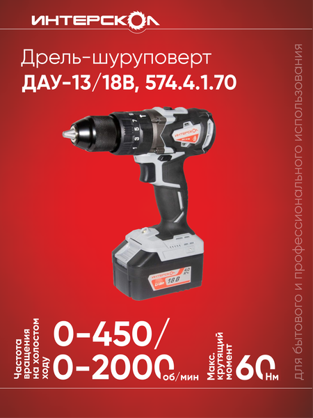 Аккумуляторная ударная дрель-шуруповерт Интерскол ДАУ-13/18В 574.4.1.70 применяется для закручивания шурупов и саморезов и сверлильных работ. Ударный режим позволяет эффективно справляться со сверлением твердых материалов. Бесщеточный двигатель увеличивает рабочий ресурс инструмента. Скорость вращения шпинделя регулируется усилием нажатия на пусковую клавишу, что обеспечивает удобство выполнения некоторых работ, например наживления саморезов, или аккуратное засверливание.
