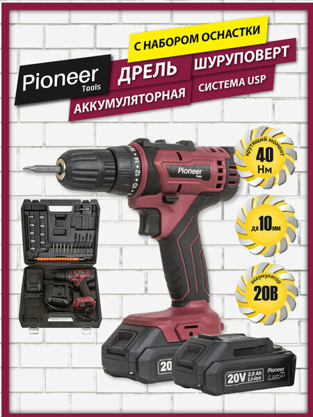 Аккумуляторная дрель-шуруповерт Pioneer CD-M2002C USP с единой аккумуляторной платформой USP и быстрозажимным патроном идеально подходит для ремонтных работ, самостоятельной сборки мебели и может использоваться при строительных или слесарно-монтажных работах. С помощью дрели-шуруповерта Pioneer вы с легкостью высверлите отверстия нужного диаметра как на деревянной, так и металлической поверхности. Дрель-шуруповерт оснащена надежной литий-ионной батареей, которая быстро заряжается, а также обеспечивает продолжительную работу в автономном режиме. Съемный аккумуляторный блок гарантирует комфорт эксплуатации, при необходимости зарядки без труда отсоединяется. ключевые характеристики: Тип: аккумуляторная Рабочее напряжение: 20 В Емкость аккумуляторного блока: 2000 мАч особенности и преимущества: USP - единая аккумуляторная платформа Pioneer Настройка крутящего момента: 18 уровней + сверление Максимальный крутящий момент: 40 Н*м Диаметр зажимаемого сверла: 0,8-10 мм 2 скорости вращения: 0~400 об/мин и 0~1500 об/мин Реверс Быстрозажимной патрон Диаметр патрона 3/8 дюйма Диаметры сверления: от 12 мм (металл) до 30 мм (дерево) Подсветка рабочей зоны Эргономичная рукоятка Anti-Slip оснащение: Аккумулятор - 2 шт. Гибкая насадка для углового сверления (flexible shaft) Удлинитель для бит Торцевые головки – 9 шт. Переходник для торцевых головок Биты – 6 шт. Сверла – 6 шт. Кейс для хранения и переноски Зарядное устройство габариты и ВЕС: *Размер - 235x190x77 мм Длина шнура зарядного устройства - 114 см Вес дрели - 895 г *ширина по габаритам АКБ Аккумуляторная дрель-шуруповерт Pioneer отличается отсутствием проводов, удобством конструкции и наличием эргономичной рукояти. Кроме этого, благодаря подсветке рабочей зоны, вы без труда выполните работу в удаленных и плохоосвещенных участках.
