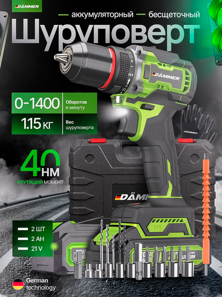 Аккумуляторный шуруповерт DAMMER - это мощный и надежный инструмент, который станет незаменимым помощником в быту и на строительных площадках. Шуруповерт работает от аккумулятора, что обеспечивает свободу передвижения и возможность работы в местах, где нет доступа к электросети. Напряжение аккумулятора составляет 21 В, что гарантирует высокую производительность и долгий срок службы. Инструмент оснащен быстрозажимным патроном, который обеспечивает быструю и удобную смену оснастки. Максимальный диаметр патрона составляет 10 мм. Дрель-шуруповерт имеет две скорости работы, что позволяет выбрать оптимальный режим для выполнения различных задач. Максимальная частота вращения на первой скорости составляет 450 об/мин, а на второй - 1400 об/мин. Аккумуляторный шуруповерт оснащен литий-ионным аккумулятором, который обеспечивает высокую энергоемкость и долгий срок службы. В комплекте идут две батареи, что позволяет работать одновременно двум пользователям. Устройство имеет предохранительную муфту и тормоз двигателя, которые обеспечивают безопасность при работе. Также в шуруповерте предусмотрена антивибрационная система, что снижает утомляемость при длительной работе. В комплекте с шуруповертом идет кейс для удобного хранения и транспортировки инструмента. Также в комплект входят фирменные перчатки и набор бит и головок, что делает использование инструмента еще более комфортным. Шуруповерт имеет полупрофессиональный класс инструмента, что гарантирует его надежность и долговечность.