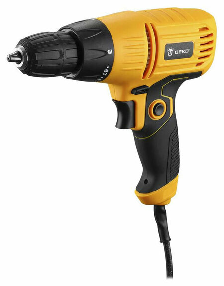 Дрель-шуруповерт DEKO DKD500 с быстрозажимным патроном (БЗП) идеально подойдёт для сверления деревянных и металлических поверхностей. Устройство очень легкое и его удобно держать в руке, что, несомненно, облегчает работу. Характеристики: Мощность: 500 Вт Max диаметр сверления (металл), мм: 10 Max диаметр сверления (дерево), мм: 25 Размер зажимаемой оснастки, мм: 1-10 Тип патрона: быстрозажимной Max крутящий момент, Нм: 28 Наличие реверса Тип двигателя: Щеточный Число скоростей: 1 Число оборотов: 0-750 об/мин Диаметр сверления: 0-13 мм Длина кабеля питания: 2 м Напряжение: 220-240 В Частота: 50 Гц Вес нетто, кг: 1,2 Поставляется в наборе, состоящем из: Дрель-шуруповерт - 1 шт. Угольные щётки - 2 шт. Руководство по эксплуатации - 1 шт.