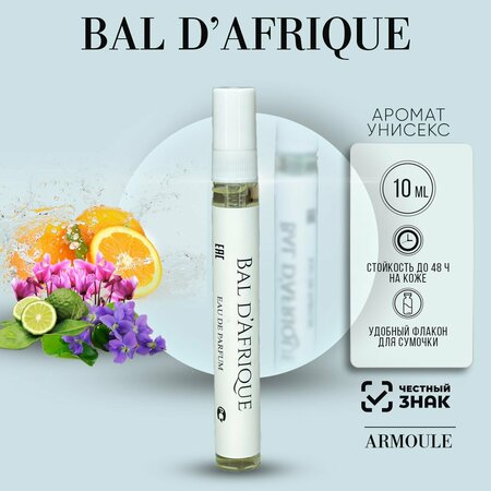 Духи Armoule унисекс мужские и женские Африканский Бал – популярная парфюмерная вода, которую выбирают и женщины, и мужчины. Мелодия всячески подчеркивает эротичность и изящество. Пирамида парфюма состоит из: верхние нотки – это сочетание свежести динамичного бергамота, терпкости апельсинового цвета, бодрящего лимона, глубины черной смородины и изысканности бархатцев; сердечные аккорды – начинают звучать романтичная фиалка, пленительный и нежный цикламен, волнующий жасмин; завершающие аккорды – теплая амбра, обольстительный мускус, утонченный кедр и неординарный ветивер, которые придают темпераментности. Мелодия бушует словно вихрь и затягивает в мир африканских звуков и запахов. Кому подходит: Аромат отлично подходит женщинам и мужчинам в самом расцвете сил. Возможно повседневное использование. На коже играет и переливается. Вполне подойдет для дружеского обеда или офиса. Стойкость парфюма до 3 дней на коже. На одежде аромат держится дольше до 7-дней. Держится на коже после душа! Данного объема в спрее примерно хватает на 2 месяца использования, в зависимости от частоты и интенсивности. Парфюмерия может стать отличным подарком на 8 марта девушке, жене или маме. На Новый Год подруге, сестре, коллеге. День рождения и 14 февраля. Парфюм (масляные духи мужские, духи женские, духи унисекс ) изготовлены в Швейцарии и упакованы в России. Состав духов : 50% парфюмерное масло; 50% парфюмерная основа. Данный аромат отличный как женский парфюм, так и мужской парфюм. Они подойдут в подарок мужчине на на день рождения или подарок женщине на 8 марта. Отличный подарок девушке на 14 февраля или подарок на новый год. Подарок любимой жене на юбилей. И конечно подарок маме, подруге или мужу на 23 февраля.