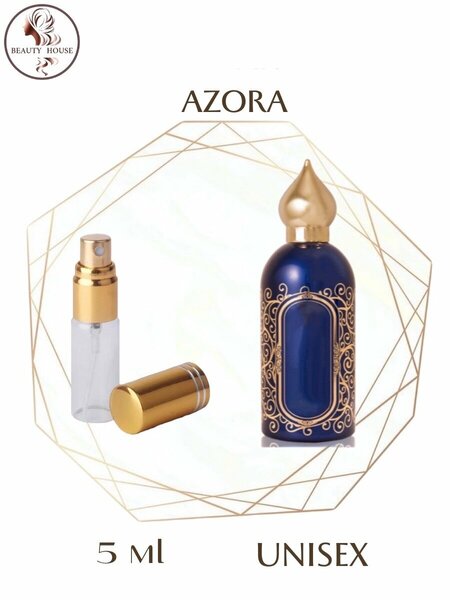 Azora — селективная парфюмерная вода с цветочно-фруктовым ароматом для женщин и мужчин, созданная в 2018 году парфюмером Miroslav Petkov для арабского парфюмерного бренда из ОАЭ. Величественный царский аромат посвящен великолепному одноименному кораблю, богато украшенному бирюзой и драгоценными камнями, на котором великий арабский султан Малик-Шаху совершал удивительные путешествия по всему миру. Свежие искристые цитрусовые аккорды бергамота и апельсина с фруктовым сладким акцентом личи открывают аромат, насыщаясь в «сердце» композиции душистыми оттенками сочного спелого персика и изысканными нотами белого страстного жасмина на чарующем фоне роскошного цветочного букета. Чувственный восточный шлейф парфюма Azora мягко струится теплыми нежными оттенками мускуса и элегантными благородными древесными нотами.