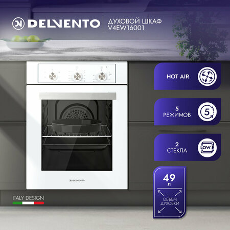Встраиваемый духовой шкаф DELVENTO станет незаменимым помощником любой хозяйки. Духовой шкаф обладает многими универсальными функциями, которые помогут готовить не только быстро, но и с удовольствием. Духовой шкаф – техника, без которой не обходится практически ни одна кухня. В нем можно тушить и запекать мясо, рыбу и овощи, печь кексы, пироги и готовить другие аппетитные блюда. Основные характеристики: ширина встройки 45 см Super slim габариты (ШхГхВ) : 45х56,6х59,5 см, функции: верхний нагрев, нижний нагрев+конвекция, верхний+нижний нагрев, верхний+нижний нагрев+конвекция, очистка паром. механический таймер на 90 мин со звуковым оповещением поворотные кнопки управления Двойное остекление дверцы Double Protection Low-E внутреннее покрытие Эмаль легкой очистки Easy Clean System полная комплектация аксессуаров Full Accessories Set : стандартный противень, круглый противень, хромированная решетка. страна производства: Турция гарантия: 3 года