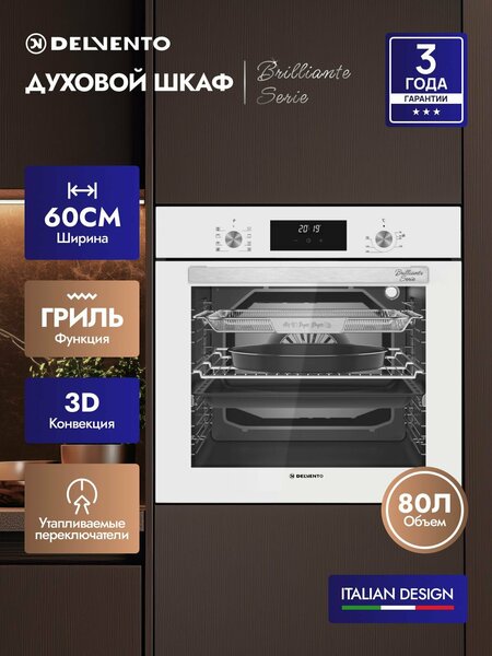 Духовой шкаф DELVENTO V6EC68011 - это высококачественное и многофункциональное устройство, которое обеспечивает эффективное приготовление различных блюд. Вместительность 80 литров позволяет готовить больше блюд. Оснащен таймером и регулятором температуры, что позволяет точно настроить время и температуру приготовления. 8 режимов работы (3D конвекция) обеспечивают гибкость в приготовлении различных блюд. Функция гриля позволяет приготовить блюда с золотистой корочкой. Стильный и современный дизайн шкафа отлично подходит для любой кухни. Дополнительные функции, такие как подсветка камеры, часы и эмаль легкой чистки, делают использование шкафа еще более удобным. Выбирая духовой шкаф DELVENTO, вы получаете высококачественное, многофункциональное и удобное устройство для приготовления разнообразных и вкусных блюд.