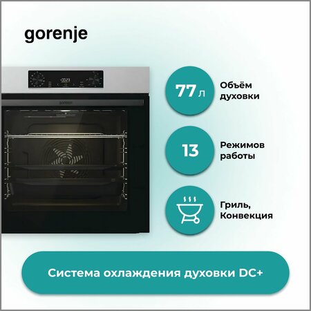 Духовой шкаф Gorenje BOSB6737E03X — изящное и технологичное решения для современной кухни. Декор выполнен в духе минимализма — ровные прямые линии, минимум деталей, приятная монохромная гамма. Основная часть фасада состоит из закаленного стекла и черной матовой окантовки. Темно-серая ручка простой прямоугольной формы лишь на несколько тонов светлее дверцы, а логотип едва проступает на ней, не отвлекая от общего ансамбля. Светло-серый цвет панели создает необходимый контраст, а в черный LCD-экран органично встроены механические поворотные рычаги такого же цвета. Сочетание классики и современности добавляет дизайну элегантности и аутентичности. Внутреннее пространство выполнено по принципу BigSpace. Широкая и просторная рабочая зона позволяет готовить блюда разных размеров, а также несколько за раз. Не нужно беспокоиться, что в последнем случае какое-то из них не пропечется — духовка имеет сводчатую форму HomeMade, а клапаны подачи воздуха установлены так, чтобы обеспечивать оптимальную циркуляцию. Благодаря этому температура будет поддерживаться везде одинаковая, вне зависимости от уровня и расположения. Духовой шкаф Gorenje BOSB6737E03X оснащен множеством полезных режимов. Среди самых интересных и полезных можно отметить GentleBake. Если вы выберете эту функцию, то получите вдумчивое, деликатное и медленное выпекание, сохраняющее сочную начинку. Для тех же, кто любит погорячее, есть режим Gratin. Включив его, можно получить хрустящую золотистую корочку на картофеле, мясе или любых других блюдах. Ухаживать за плитой несложно — производитель предусмотрел съемные стекла и режим самоочистки. Ключевые преимущества: