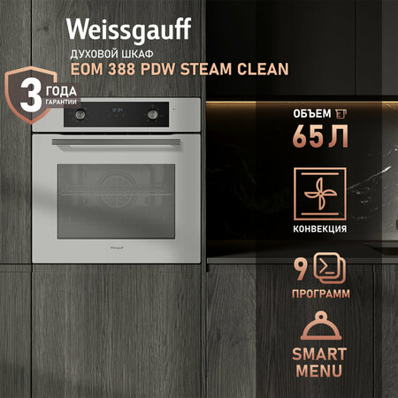 Электрический духовой шкаф от Weissgauff, выполненный в белом цвете, оснащенный утапливаемыми рукоятками PIPO, сенсорным программатором, а также крупным дисплеем с индикацией белого цвета, а богатый выбор программ откроет перед вами сразу 9 режимов, каждый из которых раскроет новые возможности приготовления вкуснейших блюд! Объем XL 65 литров дает вам полную уверенность в том, что приобретая этот духовой шкаф, вы сможете разместить в нем сразу весь необходимый объем пищи, и даже профессионально работать на нескольких уровнях одновременно, порадовав себя и своих близких настоящим пиром, приготовленным в духовом шкафу Weissgauff на действительно ресторанном уровне. Двойное стекло дверцы, воплощающее в себе весь подход к безопасности и термозащите, который Weissgauff реализовали в данной модели. Теперь случайные прикосновения к дверце духового шкафа во время процесса приготовления еды больше будут не страшны, ведь мы позаботились о том, чтобы фронтальная сторона духового шкафа никогда не нагревалась до опасных температур. Утапливаемые рукоятки PIPO - это эффективная защита элементов управления от случайных переключений и жировых испарений в процессе приготовления еды, а также дополнительное удобство при работе с духовым шкафом, дополняющее его технологическое совершенство. 9 функций духового шкафа, предлагающих самые необходимые и наиболее востребованные режимы: освещение, размораживание, турбогриль с конвекцией, турбогриль, гриль, верхний и нижний нагрев с конвекцией, верхний и нижний нагрев (традиционное приготовление), нижний нагрев, гидролизная очистка. Электрический гриль, расположенный в камере духового шкафа, расширяет ваши возможности приготовления вкуснейших блюд, позволяя добиваться эффекта аппетитной золотистой корочки! Конвекция сделает распределение тепла в камере духового шкафа ещё более эффективным, обеспечивая интенсивное нагнетание и циркуляцию горячего воздуха! Гидролизная очистка - особая технология, благодаря который вы раз и навсегда забудете те дни, когда духовой шкаф необходимо было с большим трудом вычищать, вкладывая в это непозволительно много времени и сил. Weissgauff понимает, что в современном мире время является одной из наивысших ценностей - поэтому мы оснастили данную модель функцией гидролиза: всего лишь добавьте небольшое количество воды, и духовой шкаф сам отпарит все загрязнения, используя "эффект сауны", после чего вам останется лишь провести по стенкам мягкой губкой, собрав их и удалив одним движением. Эмаль SMART CLEAN - это особое покрытие духового шкафа, призванное сделать процесс ухода за ним еще более простым и удобным. Благодаря эмали, изготовленной и нанесенной с применением сразу ряда инновационных технологий, ваш духовой шкаф будет оснащен самым настоящим высокоэффективным щитом, препятствующим накоплению жира, запаха и загрязнений, образующихся вследствие многократного приготовления еды. Дизайн в белом цвете - станет финальным штрихом в совершенстве облика этой модели. Каждый раз, взаимодействуя с духовым шкафом от Weissgauff, вы будете в полной мере ощущать, как он способен нагревать не только еду, но и согревать душу, став настоящим сердцем вашего уютного домашнего очага Класс энергопотребления А позволит вам еще раз убедиться в том, что Weissgauff способны создавать по-настоящему эффективные 