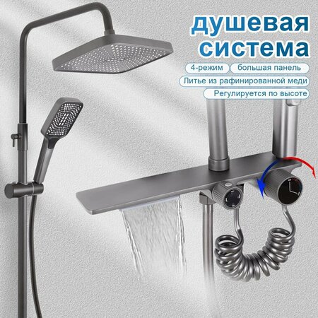 Душевая система, с тропическим душем и смесителем, комплект,4-режим, серый
