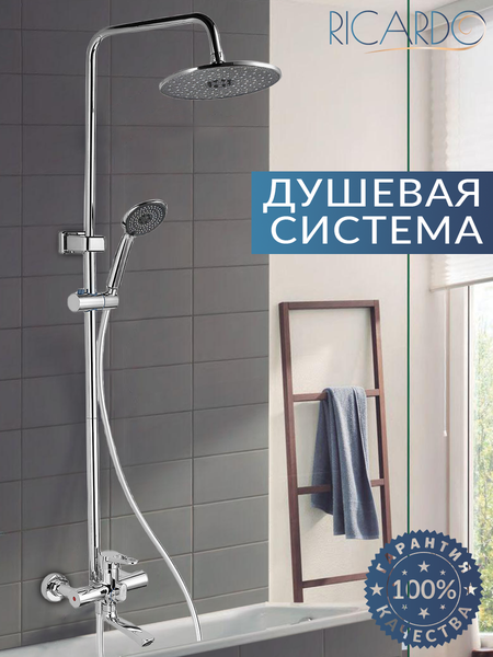 Душевая система RICARDO R1624-1 представляет собой комплект, состоящий из смесителя для ванны с лейкой, душевой штанги и тропического душа. Смеситель для ванны оснащен рычажным управлением, что обеспечивает удобство и простоту использования. Корпус из цинкового сплава, что гарантирует его долговечность и надежность. Излив с поворотом на 360 градусов. Монолитный корпус и ручка смесителя металлические. Регулируемая по высоте душевая стойка от 95 см до 135 см. Лейка Тропический дождь диаметром 23 см. Душевая лейка 3 режимная: распыление, брызги шампанского, распыление и брызги шампанского. Керамический картридж диаметром 35мм обеспечивает точную настройку температуры и напора горячей и холодной воды. Система быстрого монтажа обеспечивает простоту установки и позволяет сэкономить время и силы при монтаже. Защита от скручивания гарантирует надежность и безопасность использования. В комплекте Смеситель для ванны с металлической ручкой, Регулируемая по высоте штанга, Пластиковый аэратор с функцией легкой очистки, Керамический картридж 35 мм, Переключатель с керамическими пластинами, Верхняя поворотная душевая лейка «Тропический дождь» с функцией легкой очистки, Аксессуары в комплекте (шланг силиконовый 1,5 м, 3-функциональная лейка с функцией легкой очистки, регулируемое по высоте крепление для лейки), Присоединительная группа (эксцентрики с отражателями) для вертикального крепления, Комплект присоединительных колец, Фум лента, Запасной аэратор, Ключ для снятия аэратора. Сантехника RICARDO соответствует международным стандартам качества IS0 9001 и является экологически чистым (соответствие ISO 14001), а также безвредным для человека.