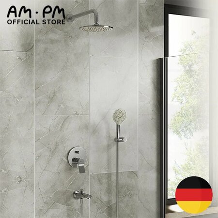 Душевая система скрытого монтажа с тропическим душем AM.PM Brava хром, встраиваемая, душевые системы со смесителем, с изливом, встроенная, Германия Душевая система встраиваемая с тропическим душем и смесителем AM. PM сочетает высокий дизайн и функциональность для истинных ценителей стиля. Разработанные известным австрийским дизайн-агентством GP designpartners, эти смесители были удостоены престижной награды Red Dot Design Awards 2019 за свою качественную работу и привлекательный дизайн. Встроенная душевая система интуитивно понятна в управлении: эргономичная форма и расположение ручек обеспечивают максимальный комфорт при регулировке. Уникальный рисунок и диаметр форсунок душевой системы с тропическим душем обеспечивают равномерное распределение воды, обеспечивая самое мягкое и приятное воздействие на Вашу кожу. Душевые системы скрытого монтажа поставляются с монтируемым в стену изливом - это современное решение для экономии пространства. Длина излива составляет 175мм - оптимальный размер для ванны любого размера. Аккуратный внешний вид смесителя будет выигрышно смотреться в ванной комнате. Аэратор Rub&Clean позволяет легко очистить его от загрязнений. Скрытая душевая система оснащена керамическим картриджем SoftMotion 35 мм, специально разработанным для AM. PM. Катридж обеспечивает оптимальную регулировку температуры, а также позволяет выдерживать любые перепады давления - это обеспечивает дополнительную защиту и комфорт в использовании тропического душа со смесителем. Встраиваемая душевая система с тропическим душем и смесителем обладает множеством деталей для удобства использования: -сопряжение ручек и декоративных элементов максимально защищает внутренние части от попадания воды и загрязнений -шаровый шарнир в держателе верхнего душа позволяет регулировать угол его наклона -переключатель режимов ручного душа Simple Switch Push - режимы переключаются легким нажатием -душевой шланг 1750 мм с защитой от перекручивания -увеличенный размер тропического душа диаметром 220 мм, ручной душ диаметром 110 мм. -функция Rub&Clean позволит легко очистить душевые форсунки от загрязнений. Душевые системы AM. PM поставляются с подробной инструкцией, что делает установку легкой и быстрой. Вы сможете наслаждаться всеми его преимуществами в самое короткое время! Душевая система с тропическим душем встраиваемая AM. PM - это инвестиция в стиль и надежность, которые будут служить Вам на протяжении долгого времени, а повышенная гарантия на корпус смесителя 10 лет, на душевую систему 2 года и одна их самых широких сетей сервисных центров обеспечат вашу уверенность в правильном выборе! Поддержите эко тренд-на товар действует электронная гарантия- забудьте о хранении чеков и инструкций! Комплектация: Душевая система с тропическим душем, Верхний душ, Кронштейн для верхнего душа, Душевая лейка, Держатель для лейки, Шланг для душа, Излив.