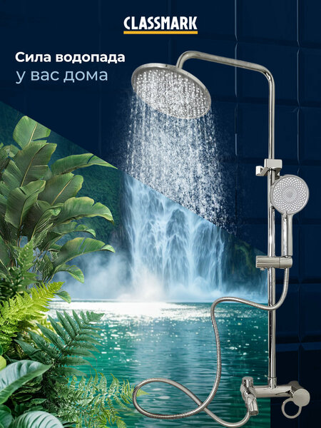 Душевой комплект с тропическим душем, со смесителем Classmark HD1238 душевая система, стойка для душа в ванной, высота штанги 112 см, длина шланга 150 см, 3 режима, хром - это истинное воплощение современного комфорта и функциональности в вашей ванной комнате. Штанга для душа на стену и душевая система предлагают вам непревзойденный опыт, который превосходит все ожидания. Изготовлена из высококачественной сантехнической нержавеющей стали, меди и пластика, эта душевая система обеспечивает надежность и долговечность. Вы можете быть уверены, что она прослужит вам множество лет, не подвергаясь коррозии и не содержа вредных примесей в воде. Душевая система Classmark HD1238 оснащена шлангом длиной 150 см и душевой стойкой длиной 112 см, что обеспечивает максимальное удобство использования. Вы сможете настроить высоту душа и держатель лейки душа, кран и направление струи под ваши предпочтения. Но это еще не все! Душевая система Classmark HD1238 имеет 3 режима, которые позволяют вам выбрать наиболее подходящий режим струи для вашего комфорта. Независимо от того, нужен ли вам мягкий и расслабляющий массаж, или бодрящий и освежающий поток воды, эта душевая система справится со всеми вашими потребностями. Кроме того, дизайн душевой системы Classmark HD 1238 привлекает внимание своей элегантностью и современным стилем. Она станет прекрасным дополнением к любому интерьеру ванной комнаты, придавая ей изысканность и шарм. Не упустите возможность обновить свою ванную комнату с помощью душевой системы Classmark HD1238. смесители и душевое оборудование, сантехника для ванной обеспечат вам непревзойденный комфорт, качество и стиль каждый раз, когда вы принимаете душ. Если вы ищете смеситель в ванну с душем Classmark - ваш выбор.
