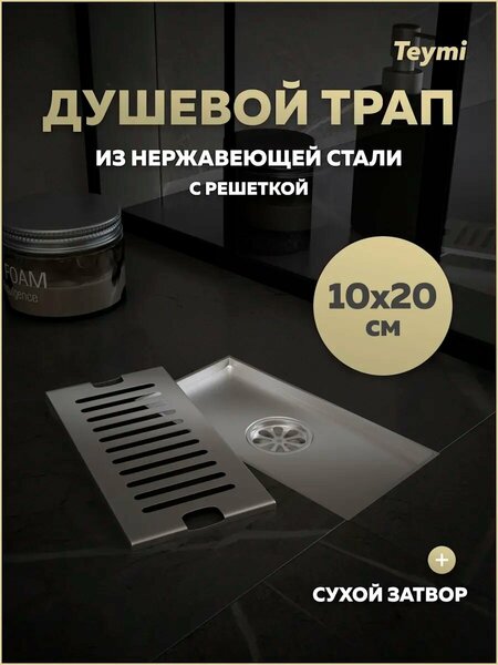 Душевой трап Teymi Helmi с сухим затвором – идеальное решение для обустройства современной душевой зоны. Модель Helmi T90325 размером 10х20 см объединяет инновационные технологии с практичностью, обеспечивая эффективный водоотвод и защиту от канализационных запахов. Стильная решетка из нержавеющей стали придает изделию элегантный внешний вид и гарантирует долговечность конструкции. Производитель предоставляет 5-летнюю гарантию на продукт, подтверждая его высокое качество. Ключевые преимущества модели: • Вертикальный выпуск с возможностью подключения 50 мм; • Оптимальная пропускная способность – 32 л/мин; • Механический сухой затвор предотвращает появление запахов; • Встроенная защита от попадания мусора в канализацию; • Работоспособность при температурах от -30° до +75°C; • Удобный монтаж; Трап под душевую кабину разработан специально для помещений с повышенной влажностью. Конструкция лотка обеспечивает быстрый отвод большого объема воды, исключая риск затопления. Материал устойчив к воздействию бытовой химии, что позволяет использовать различные чистящие средства. Продукция Teymi – это надежное решение для водоотведения, высококачественные материалы, используемые при производстве, гарантируют длительную эксплуатацию без потери технических характеристик. Душевой трап Helmi станет надежным функциональным элементом вашей ванной комнаты.