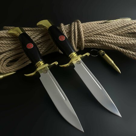 Две финки НКВД: качество и надежность Две финки НКВД представляют собой отличный выбор для любителей активного отдыха и туризма. Они обеспечивают высокую функциональность и удобство использования благодаря своим характеристикам и особенностям. Прочность и долговечность Финки изготовлены из стали 95 × 18, что гарантирует их прочность и долговечность. Длина клинка составляет 16,5 см, а обух – 2,4 мм, что делает их удобными для выполнения различных задач. Рукоять финки выполнена из дерева граб, что обеспечивает комфортное и надежное удержание ножа в руке. Цвет рукояти – черный с золотистыми элементами, что придает ножу стильный и современный вид. Ножны для финки изготовлены из кожи, что обеспечивает их долговечность и защиту ножа от повреждений. Общая длина ножа составляет 26 см, а толщина – 2,4 мм. Выбирая две финки НКВД, вы получаете качественный и надежный инструмент для различных видов активного отдыха и туризма.