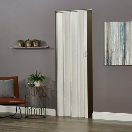 Дверь-гармошка "UNI" 203 х 113,5 см, белая молочная полуматовая, колесики, магнитная защелка